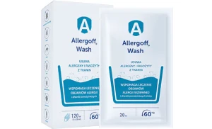 Allergoff Wash dodatek do prania w niskich temperaturach usuwa alergeny (m.in. roztoczy kurzu domowego) oraz ułatwia fizyczną eliminację pasożytów obecnych w tkaninach (pchły, kleszcze, wszy, pluskwa domowa) w temperaturze poniżej 60°C. Wspomaga leczenie objawów alergii wziewnej oraz zakażenia świerzbowcem i nużeńcem. Zalecany jest również do prania legowisk dla zwierząt.