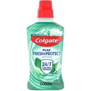 Colgate PLAX Fresh & Protect Soft Mint dociera do miejsc niedostępnych dla szczoteczki, pomagając usuwać resztki osadów i bakterii oraz wspierać uczucie świeżości. Regularne stosowanie płynu po szczotkowaniu zębów przyczynia się do dłuższego utrzymania czystości jamy ustnej i komfortu oddechu.