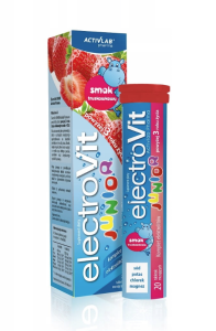 ElectroVit JUNIOR Activlab Pharma to produkt dla dzieci powyżej 3 roku życia, o doskonałym smaku truskawkowym.