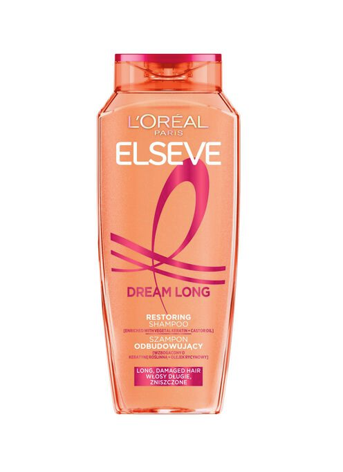 Elseve Dream Long to odbudowujący szampon przeznaczony do włosów długich, zniszczonych i podatnych na łamliwość. Formuła została opracowana tak, aby delikatnie oczyszczać włosy i skórę głowy, wspierać odbudowę uszkodzonych struktur włosów oraz ułatwiać ich rozczesywanie bez nadmiernego obciążenia. Produkt należy do linii L’Oréal Paris Elseve.
