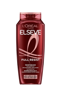 Elseve Full Resist to wzmacniający szampon przeznaczony do włosów osłabionych, narażonych na wypadanie i zniszczenia. Formuła została stworzona, aby delikatnie oczyścić włosy i skórę głowy, wzmacniać strukturę pasm oraz poprawiać ich odporność na codzienne obciążenia. Produkt należy do linii L’Oréal Paris Elseve.