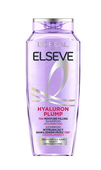 Elseve Hyaluron Plump to szampon wypełniający nawilżeniem, który intensywnie pielęgnuje włosy suche i pozbawione objętości. Dzięki formule z kwasem hialuronowym produkt wspiera długotrwałe nawilżenie nawet do 72 godzin, pomagając przywrócić włosom miękkość, elastyczność i lśniący wygląd. Produkt należy do linii L’Oréal Paris Elseve.