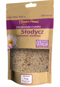 Fit Słodycz to naturalna niskokaloryczna słodycz. Zawiera substancje słodzące. To naturalna, niskokaloryczna słodycz zawierająca kwiaty i zioła. Nadaje napojom i daniom bogatą słodycz. Idealnie smakuje z gorącymi i zimnymi napojami, deserami i słodkimi przekąskami.