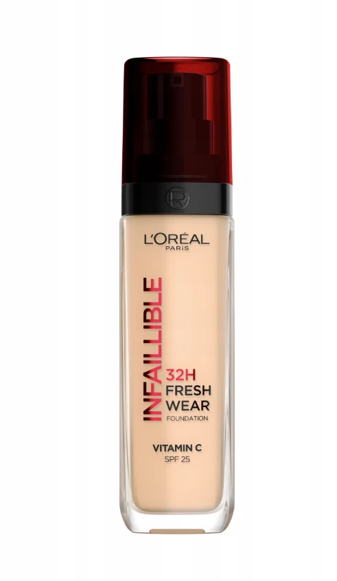 L’Oréal Paris Infaillible 32H Fresh Wear to długotrwały podkład do twarzy, który zapewnia świeży, naturalny wygląd skóry nawet do 32 godzin. Lekka, oddychająca formuła równomiernie się rozprowadza, wyrównuje koloryt i skutecznie maskuje niedoskonałości bez efektu maski. Odcień 100 Linen sprawdzi się przy jasnej karnacji z neutralnym tonem. Produkt marki L’Oréal Paris.