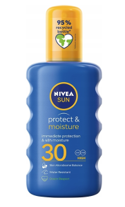 NIVEA SUN Protect & Moisture Spray do opalania SPF30 200 ml zapewnia skuteczną ochronę przed promieniowaniem UVA i UVB, jednocześnie wspierając naturalny proces opalania skóry. Formuła z ekstraktem pro-melaniny aktywuje produkcję melaniny, dzięki czemu skóra szybciej nabiera zdrowego, złocistego koloru. Spray ułatwia równomierną aplikację, a lekka konsystencja nawilża i chroni skórę przed przesuszeniem.
