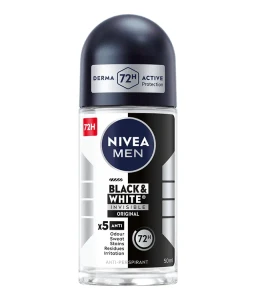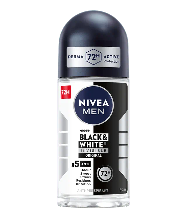 Antyperspirant NIVEA MEN Black&White Invisible Original zapewnia niezawodną ochronę 5w1 przed nieprzyjemnym zapachem, potem, podrażnieniami, żółtymi plamami na białych ubraniach i białymi śladami na czarnych ubraniach. Niezawodna, 72-godzinna ochrona, która jednocześnie pielęgnuje Twoją skórę.