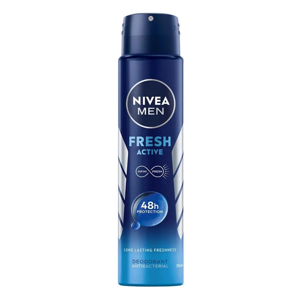 Dezodorant Nivea Men Fresh Active szybko się wchłania, zapewniając jednocześnie niezawodną 48-godzinną ochronę. Sekret tkwi w unikalnej formule NIVEA ∞ INFINIFRESH. Dzięki swojej antybakteryjnej formule skutecznie eliminuje bakterie powodujące nieprzyjemny zapach. Poznaj niesamowitą świeżość z ekstraktem z oceanu i ochronę dezodorantu, która jednocześnie pielęgnuje Twoją skórę. Dezodorant nie zawiera aluminium. Tolerancja dla skóry potwierdzona dermatologicznie.