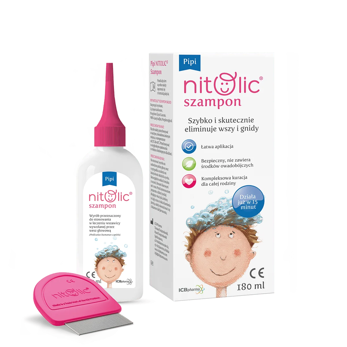 Pipi NITOLIC Szampon jest wyrobem medycznym przeznaczonym do stosowania w leczeniu wszawicy wywołanej przez wesz głowową (Pediculus humanus capitis).