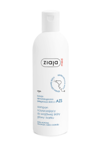 Szampon oczyszczający do codziennej higieny włosów, skóry głowy i karku. Wykazuje skuteczność w pielęgnacji suchej skóry głowy i karku występującej w przebiegu AZS, w problemach typu łupież oraz nadmierne przetłuszczanie się włosów.